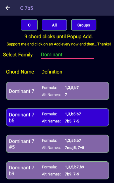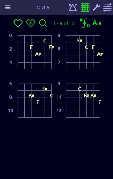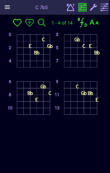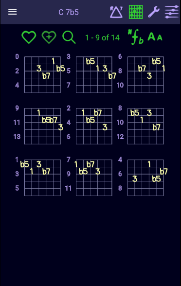 - Standard and non standard chord positions (drop 2, 3 and more).